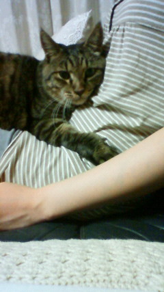 【1日脱走から戻って甘えるショコラ】 昨夜、1階で寝ていたショコラが、台所の窓の網戸を開けて外に脱走しました。喧嘩の傷がまだ完全に治っていないため、もう10日間になりますが、家の中から外に出さないようにしていました。 毎日、外に出たくてなきましたが、ビッコを引いているままで外に出すわけにはいきません。 しかし、昨夜、クーラーを消して、台所を網戸にしたら、夜中に網戸をこじ開け、格子の間から外に出てしまったようです。 今日一日、帰ってこなかったので心配しましたが、夜になって帰ってきました。だいぶお腹を減らしていたので、どこか涼しいところででも、寝ていたんだと思われます。最近、“まご”もいて、鬱陶しくて、家出をしたのかとも思いましたが、ショコラの真意は・・・?
