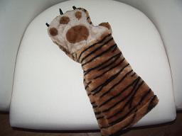 【猫用ハンドプレイヤー】 これは猫用の“ハンドプレイヤー”だそうです。 別名は、「猫じゃらしミトン」。猫をじゃらす時、この“ハンドプレイヤー”なるものを、手袋のように手を通して使います。 そうすると猫の爪で引っかかれて、手が傷つくのを避けることができる優れものです。厚手の生地で丈も長めのため、猫が興奮して爪を出しても、全く痛くありません。 先っぽのとがったところの黒い爪の部分には、“キャットニップ”という、猫が喜ぶ臭いが付いているようです。 またたびのようなものかな・・・。 これも、数あるマゴのオモチャの一つです。