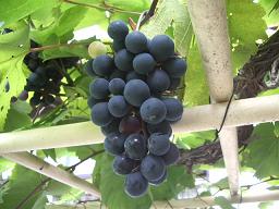 【甘くなってきたぶどう】 ぶどうの実が濃い紫になってきて、だいぶ甘くなってきました。今年も消毒は、まだ若い芽が出てきた頃に1回やっただけでした。 追肥などしたことがないのに、毎年、確実に甘いぶどうを食べられます。ここには、ぶどうの木が2本ありますが、いずれも父がY大学に勤務していた時に、研究用で丈夫な品種を開発したものをもらったものだと聞きました。 消毒1回ぐらいだと、どうしても虫がついてしまい、ぶどう特有の黒点病になってしまう実もできてしまいます。 でも、多くの実はよく育って食べられます。 病院の父にも、持って行ったと思いますが、ほとんど食べられないので、食べていないと思います。
