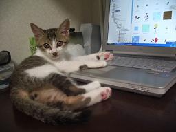 【やっぱりここがいい】 これは隣の長男の部屋に移動したパソコンです。 気を許すと、結局、こんなことになります。でも、毎回毎回叱られていれば、だんだん分かるようになってくるかもしれません。 最近のまごは、朝5時ごろから騒ぎだして、「起きろ!!」「起きろ!!」と要請します。 こちらは眠いので、寝たふりしたりしてごまかそうとしますが、まごも、頭がいいのか、なかなかごまかされません。結局、5時ごろ、その日の1回目のえさを与えることになります。 あまり変な癖を付けさせたくないと思い、できれば朝食は7時ぐらいにして、人間とほぼ同じ時間に食べてもらいたいと思いますが、どうも、こちらの思うようには、いかないようです。