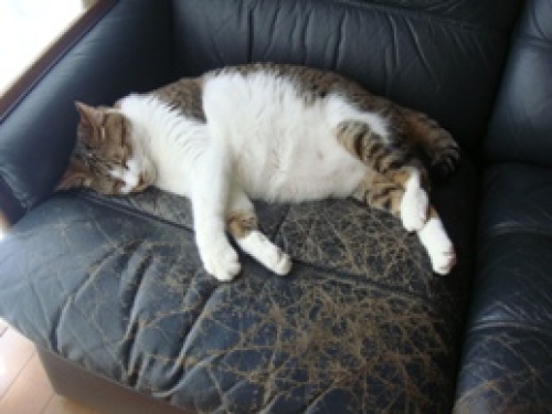 【睡眠不足のマゴ】 いつも私のベッドで一緒に寝ているマゴですが、ここ2~3日、私が 深夜から早朝にかけてテレビでオリンピックを見ている間、ソファーで 私の隣にいました。寝たり起きたりしていましたが寝不足のようで、 昼間はビクともせずに眠っています。 連日の深夜早朝オリンピック観戦つきあい睡眠不足