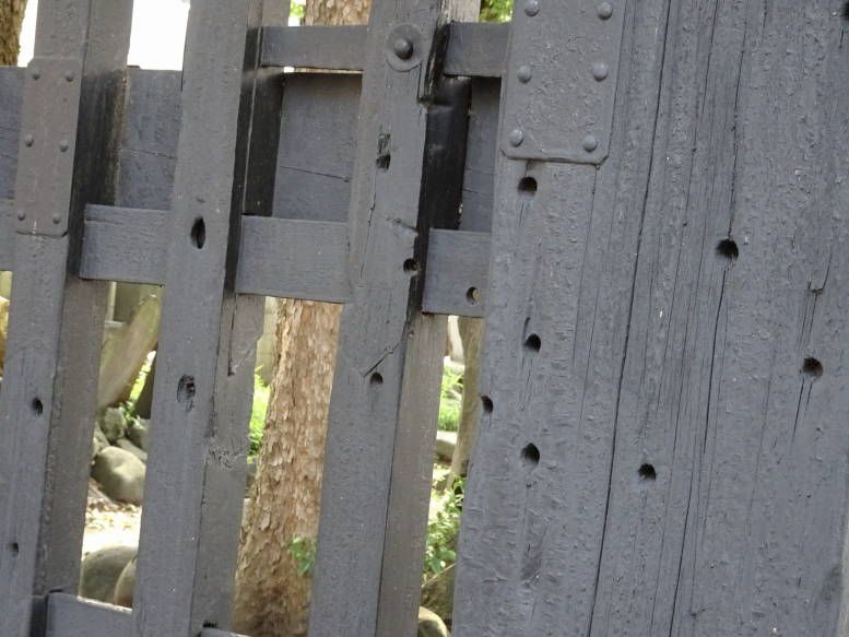 【黒門に残る弾痕のあと】