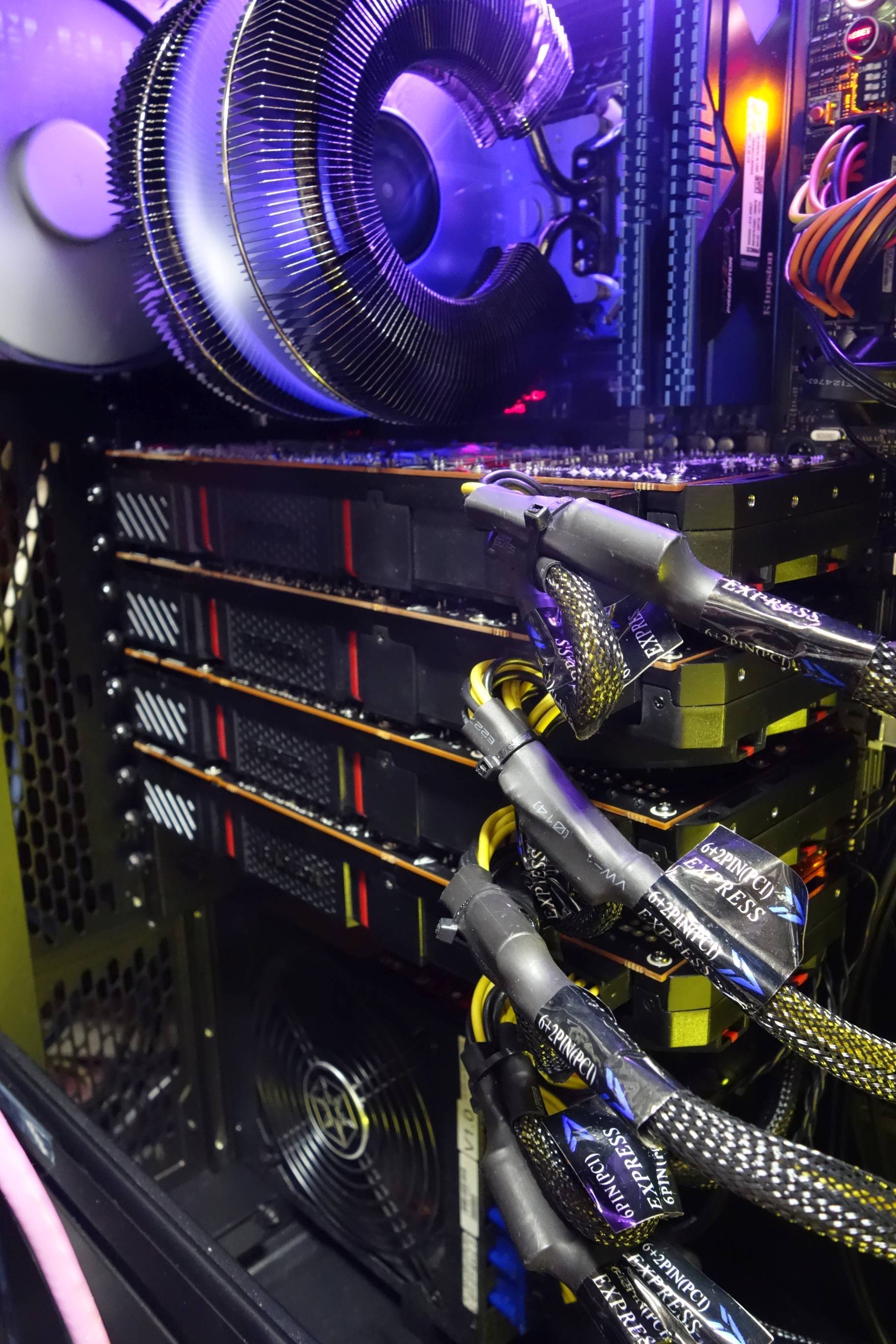 別に気づいたら4枚に増えていたわけではなく....私が増やしました。 すみません...。(^^;BOINCの演算用として導入した次第です。AMDのRadeon R9-290Xは62億トランジスタを集積。単精度では5Tflops、倍精度で0.7Tflopsの浮動小数点演算能力を誇ります。それを4枚。80年代のスパコンより高性能かも??ただ290Xは結構電力を食うので、倍精度の演算などは4枚すべてがフルパワーで動いたときは1200Wの電源ユニットの保護回路が動作してしまい、一瞬パソコンが気絶状態に....。電源は2台体制が良さそうです。とにかくヘアドライヤーのような音が凄まじく、夜もぐっすり眠れないくらいです。(轟音の中で寝ましたが)いずれ水冷化します。そしてR9-200シリーズのコード名がHawaiiなのです!!うーむ、ハヴァィッイな気分です。(^▽^)(どこが??)ベンチマークをとってみました。各カードは演算装置として使っているためCfx接続はしておらず映像はシングル動作となっています。