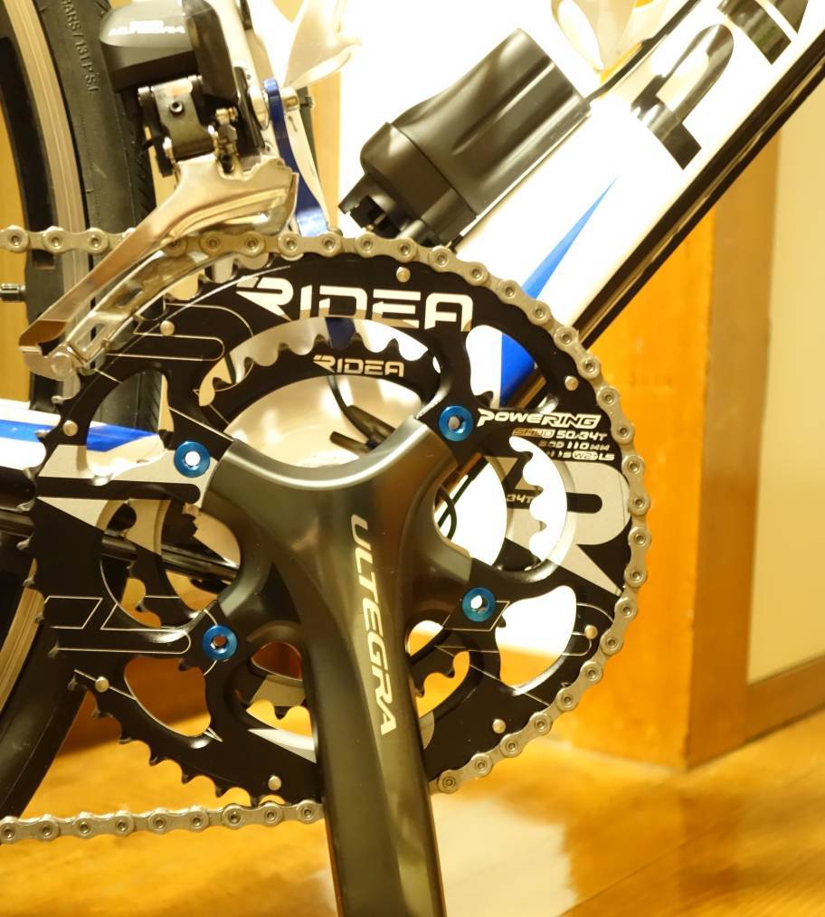 つい最近、電動変速(残念ながら電動動力アシストではない)になった私の愛車ですが、今日は楕円のチェーンリング(フロントギヤ)を入れてみました。台湾RIDEA社のシマノ4アーム専用チェーンリングで、つい最近日本に上陸したモデルです。フロントは50Tと34Tの組み合わせ。楕円なので、アウターは重いところで52T~軽いところで48Tの変化するギヤとして振る舞い、インナーは見かけ上36T~32Tのように振る舞います。脚をぐっと踏み込んでいるときが少し重くなり、逆の脚が踏み込みを開始する間がギヤが軽めになり左右がそれぞれ次のサイクルに移ることが速くなります。それは実に理にかなっていますが、見方を変えると「脚を休ませない」構造ですよね。脚力の弱い私は、真円で回すいつもの速度とペダル回転数になるように走れば疲れないかなと思います。調子に乗って左右を次々と踏み込んでいては疲れてしまいます。(笑)リア周りはシマノ純正。私は脚力に自信が無いクセに長旅をしたがるので、スプロケットは11T~32Tの11段変速です。お店から帰る途中は直線や坂などが色々ありましたが...内→外に掛け上げるのと外→内に下ろすのと、どちらも速くスムーズで、チェーンが引っかかったり外れたりするような素振りは全くありませんでした。また、ペダル回転で重くなったり軽くなったりするような「楕円っぽい感覚」は薄いようでした。確かに真円よりはメリハリはあるものの、変化がスムーズで極端な違和感はありません。因みにリア32Tは普通の坂ですと、無駄に回しすぎている感があり、前に進んでいるという感覚がありません。普通の坂でしたら25か28で十分です。長旅で疲れきっているときの登坂や、傾斜のきつい坂道、或いは坂道発進で有効かと思われます。やや特殊な構成なので、自分の脚力と相談しながらじっくり付き合っていきたいと思います。