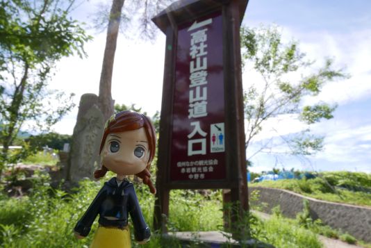 信越トレイルのトレイル開ききの前日、関田山脈の向かい側にある高社山に登ってきました。谷厳寺(こくごんじ)駐車場からスタートです。通りかかった近所のおばあちゃんに挨拶をしたら「たかやしろですか?今日は天気がいいから良く見晴らせますよ」みたいなことを言われました。高社山(こうしゃさん)は地元では「たかやしろ」と呼ばれているようです。では早速スタート。現在9時一寸前です。「今日も一日がんばるぞい!」道標が微妙に埋もれている。「ちょっと不安...」そして、「マジで??」石に刻まれたお不動様。手を合わせてゆきましょう。実はいきなり登山道がわからなくなり、写真右手のほうに迷い込んで一周したことは内緒です。写真中央あたりの踏み跡が登山道のようです。(道標は無し)左手に見えた大きな仏像。大日如来さまと勢至菩薩さまに手を合わせました。(敷地内に全部で八体の仏像が居られるとのことです)忠魂碑。釈迦如来さま。静かな山道です。因みにこの日に私がすれ違ったのは1人のみです。(入山者は私含めて2人)でも、この静寂が良いです。電気柵を通ってゆきます。文殊菩薩さま。普賢菩薩さま。天狗の飛び石。地蔵菩薩さま。私は、登るときは神仏に手を合わせ「道中安全を祈願いたします。宜しくお願いします。」とお祈りして、下りでは「無事に頂上に行けました。残りの下り道中も見守ってください。お願いします。」とお祈りしています。もちろん自分の安全は自分でが基本ですが、目を閉じて手を合わせると神仏が自分を見守ってくれている気持ちになります。薬師如来さま。観音菩薩さま。勢至菩薩さま。とぐろを巻くような凄い木。阿弥陀如来さま。阿閦(あしゅく)如来さま。手書きの道標。大日如来さま。名前を失念しましたが、神奈川県ではあまり見られない花ですね。この花はどこかで見たような気がします。虚空蔵菩薩さま。八幡宮。これはツツジでしょうか。高杜山(高社山の手前のピーク)が見えてきました。見晴らしは最高です!!どこかの講が建てた石碑。岩室。ここでYの字分岐。「右かな...」「左かな」「どっち?」左の鎖があるコースが登山道です。(余所者には解りにくいです)「こっちかぁ...」高杜山(高社山の手前のピーク)に、お社がありました。御岳神社というそうです。高社の頂上が見えてきました。高社山の頂上です。脚力が無い私の脚で3時間掛かりました。(小休止込み)「とうちゃこ!!」頂上にもお社があります。高社山は、まさに地元の人々の祈りの山でした。中野市方面が見渡せます。展望デッキからは関田山脈(信越トレイル)が見えます!ところで頂上の気温は....さあ、下山開始です。「行くよ!!」下山は小休止込みで2時間くらい掛かりました。谷厳寺にお詣り。お浄財を納め、手を合わせてゆきましょう。(駐車場を使わせて頂いている身です。只々感謝です。)紫陽花が見事でした。さあ、クルマに戻りましょう。無事戻ってきました。「ゴール!!」とても楽しい山歩きでした。でも筋肉痛が....明日のハイキングは大丈夫でしょうか....
