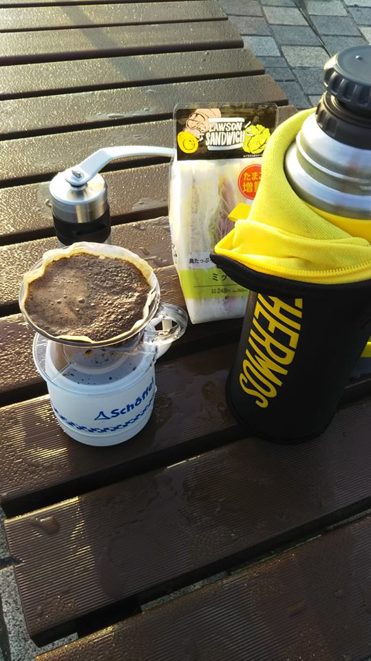 出張先の公園で朝食。コーヒーはメキシコのオアハカ州プルマ・ヒダルコ地区にあるオーロラ農園で作られたカツーラ種、カツアイ種だそうです。(お店のオススメで購入)ポーレックスのコーヒーミルでガリガリと挽いて、ポットに入れたお湯で淹れます。ポーレックスセラミック コーヒーミル ミニ NEW 【送料無料/在庫有/あす楽】【RCP】価格:6264円(税込、送料無料) (2018/6/24時点)早起きすると楽しいことが沢山ありますね。