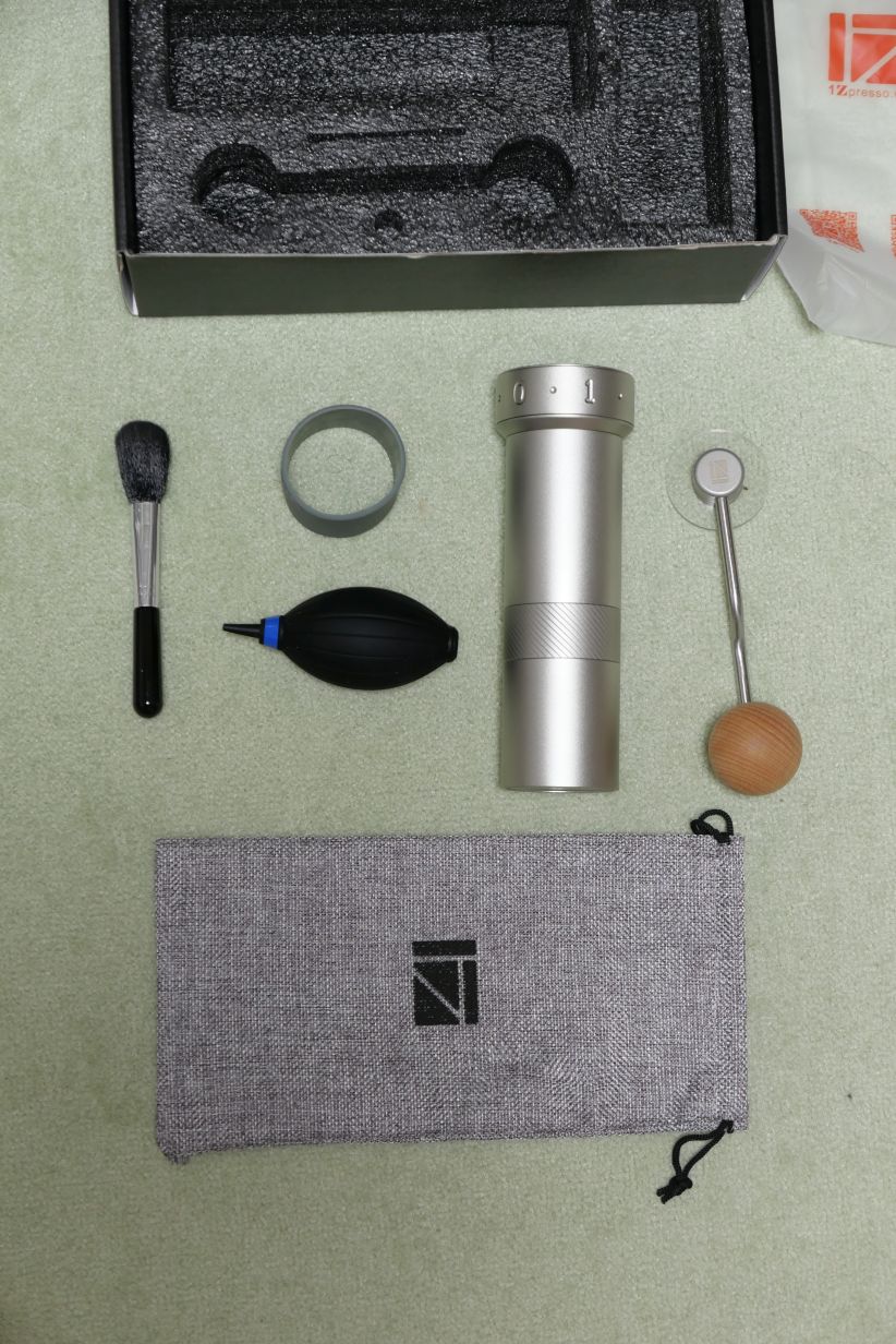 コーヒーグラインダーZpro(台湾1Zpresso社)が到着。箱から出すとこんな感じ。刷毛やヒコヒコするやつまで入っています。収納袋があるのはアウトドアなどでの用途では嬉しいですね。愛用のコマンダンテと並べてみました。どちらも持ちやすい形状です。この上部の太いリングを回して粒度を変更します。普通のものですと下のネジで調整なので、Zproは結構ユニークだし使い勝手は良さそう。コーヒー豆を挽いてみて...コマンダンテとの差は、それほど無いように思えます。どちらもベアリング支持なのでスムーズですよ。ハンドルノブの持ちやすさは、コマンダンテのほうが圧倒的に持ちやすいです。握ってみると差がはっきりわかります。粒度の調整は、外側にダイヤルがあるZproの圧勝ですね。これは画期的です。その日の気分や豆によって粒度を変える人は、コマンダンテのように何回転と4分の1とかでなく外側の数字で覚えられます。ほんと、これは凄い。見た目はコマンダンテのほうが木目調で素敵ですが、Zproのメカメカしい感じも良いです。収納性はZproのほうが良いですね。専用の袋もあるし。家ではコマンダンテ、キャンプなどにはZproと使い分けも面白いです。さっそく淹れてみました。豆はカリビアンクイーンの中煎り。私と母のお気に入り。因みにカップはローゼンタール(ドイツ)のクラシックローズ。とても美しく、私のお気に入りです。コーヒー、とっても美味しいです!! \(^o^)/
