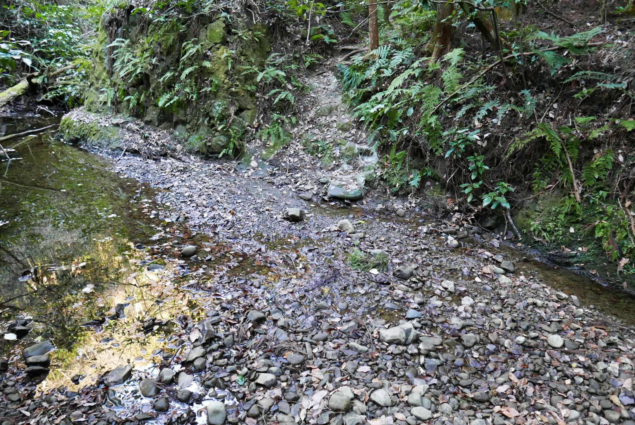 森戸川の南沢沿いに上流へさかのぼり、中尾根の南中峠(六把峠)あたりに出て田浦駅方面に下山しよう思ってましたが...