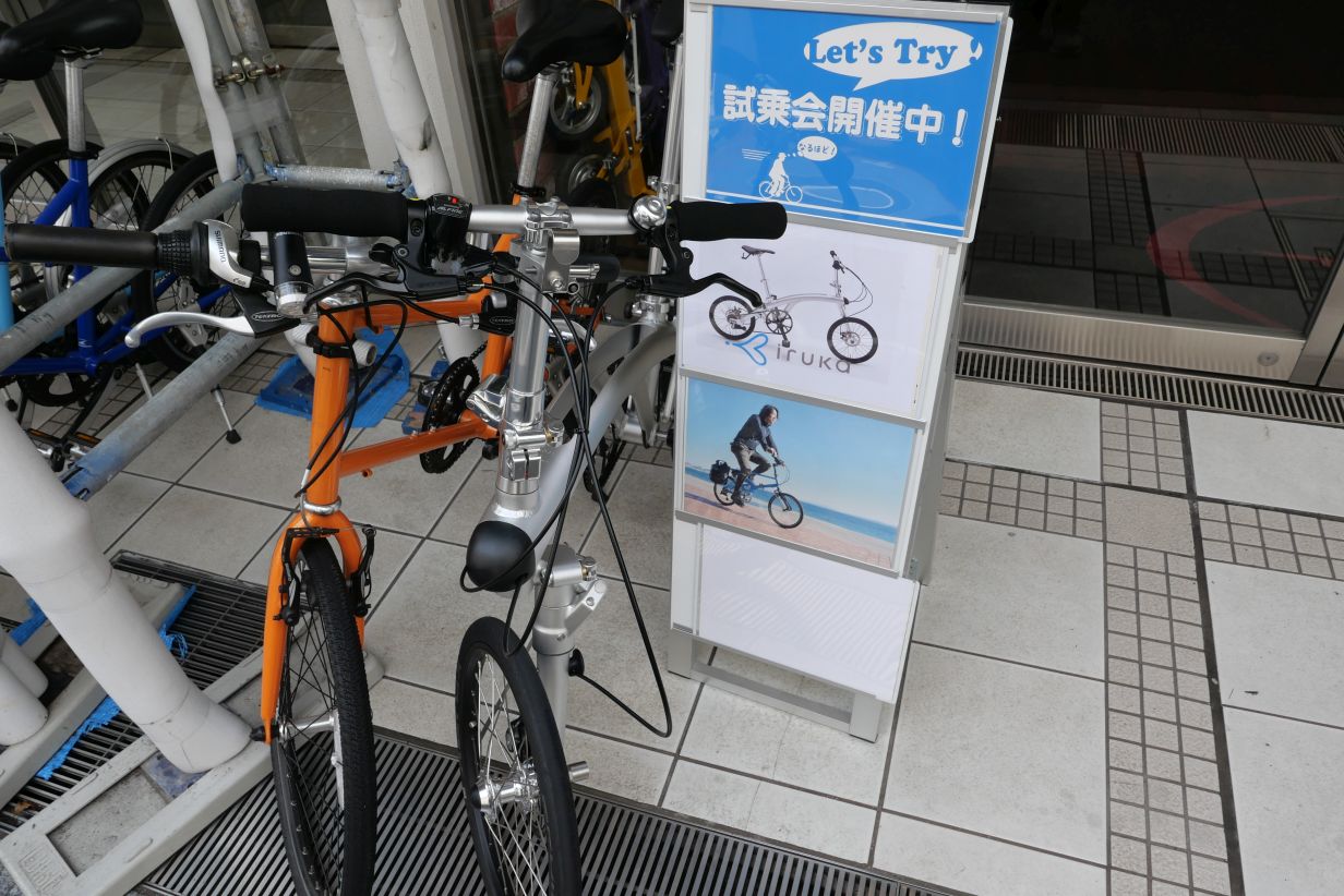 数週間前ですが、横浜の自転車店で折りたたみ自転車「iruka」の試乗会があるとのことで、足を運んでみました。