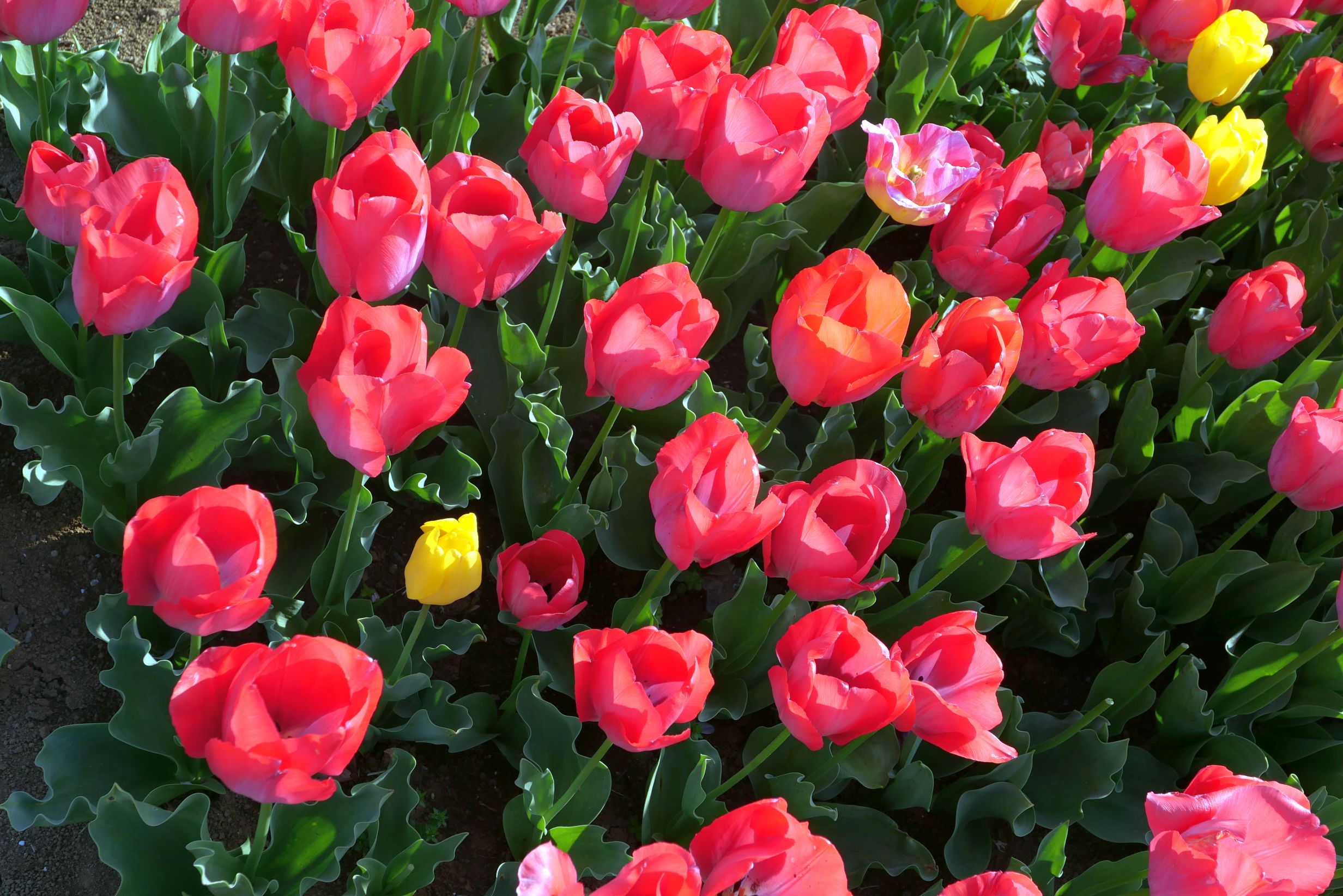 道路沿いにチューリップ。