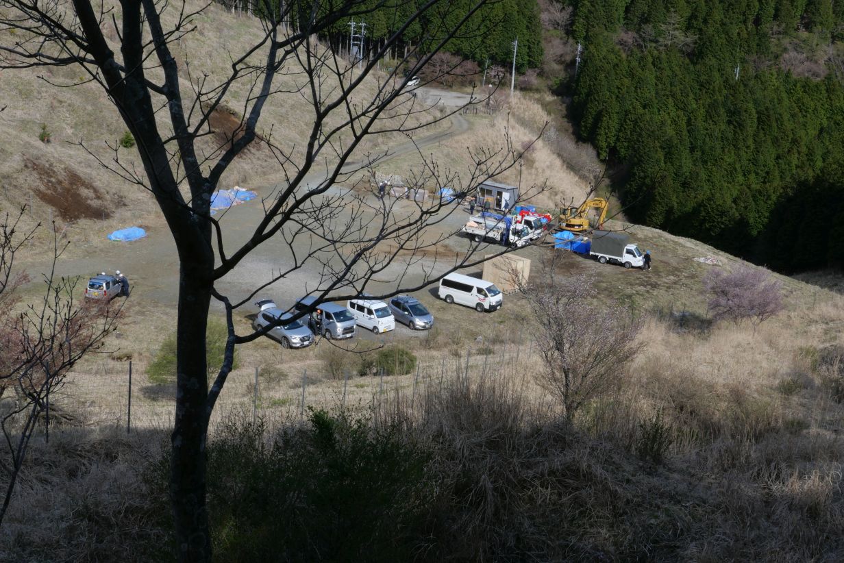 二ノ塔から下りてくると、工事車両の置いてあるエリアが見えました。
