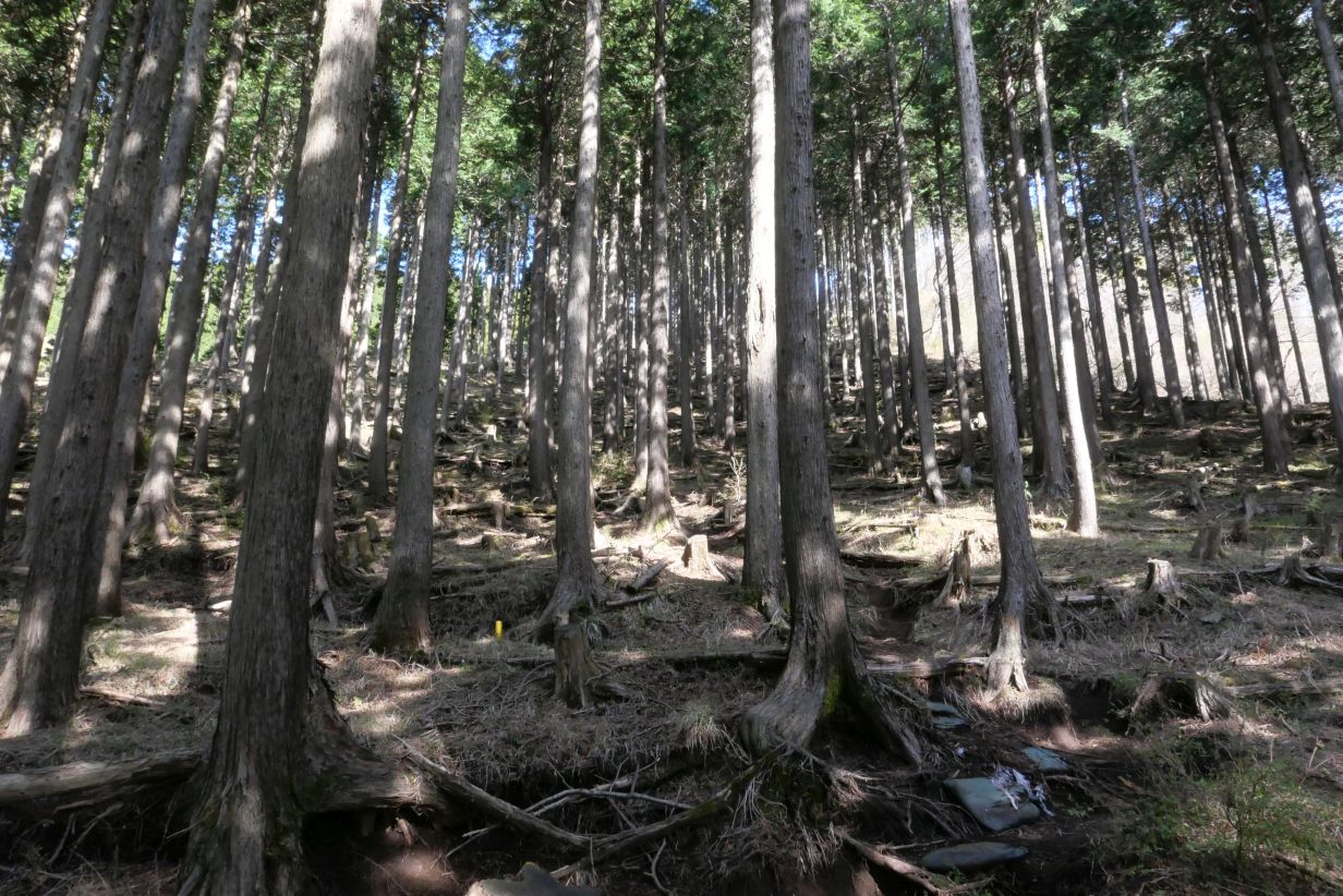 このあたりに来るまでは風が音を立ててましたが、「ビュービューする音が怖いので、どうか風を鎮めていただけませんか」と手を合わせたら、菩提峠に到着する頃には風が落ち着いていました。