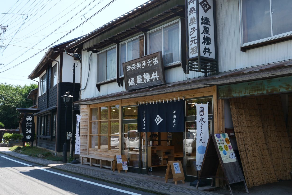 「塩屋桜井」という老舗の和菓子屋さんで、羊羹と落雁を購入。(母へのお土産です)
