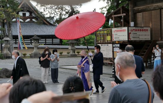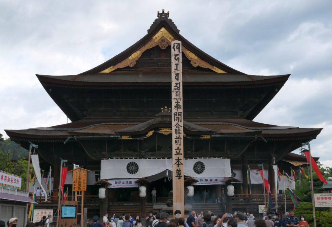 ご開帳の善光寺。早朝から人が大勢来ています。