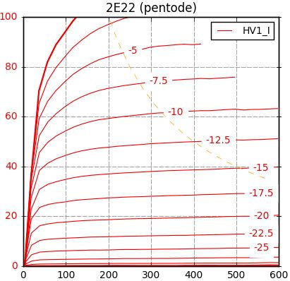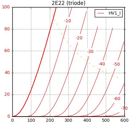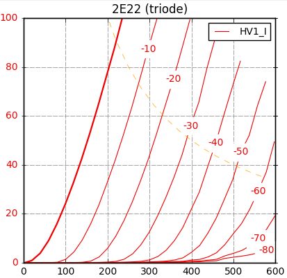 規格は 真空管(Electron tube) 規格表データベースのなかの2E22の資料 を参照ください。