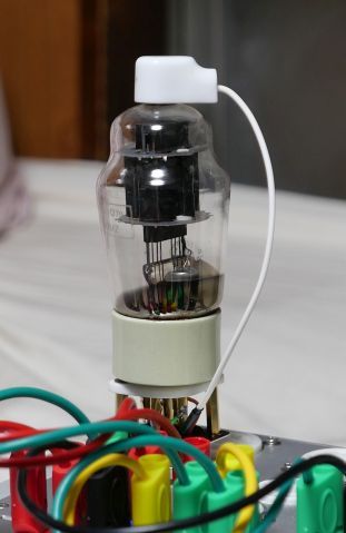 ヒーターは6.3V1.25Aでプレート損失は25W程度だそうです。だいたいB5ソケットの物は4V管が多いですが、これは6.3Vなので有り難いですね。そのまま使えます。