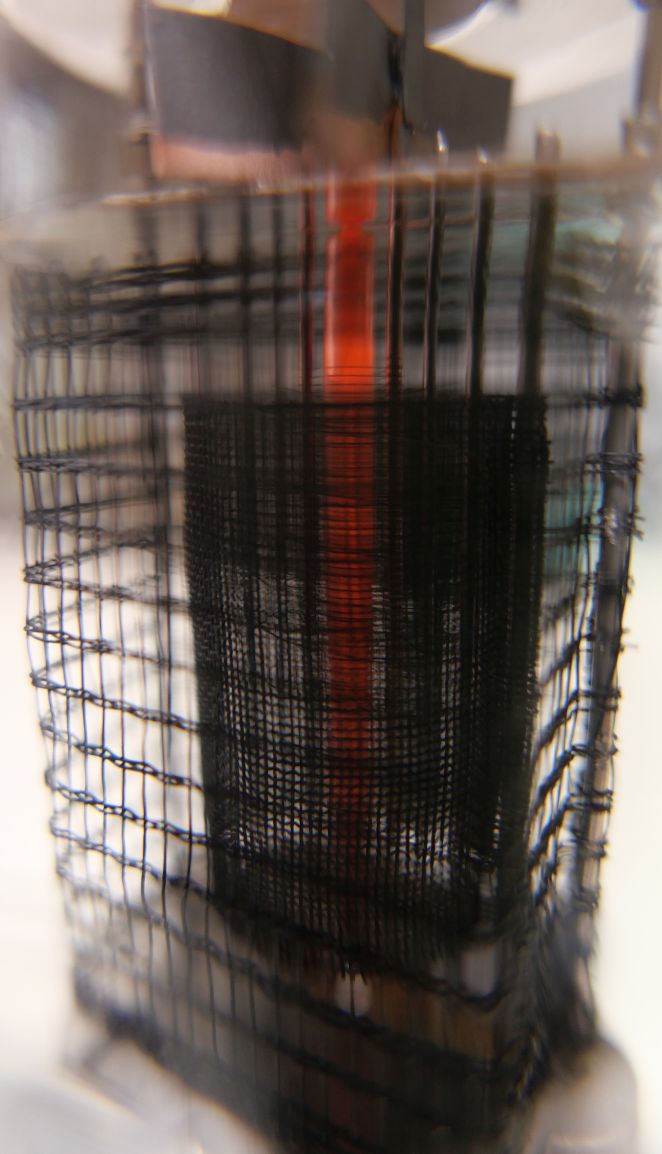 荒いメッシュなので、各電極、そして中心のカソードがよく見えます。