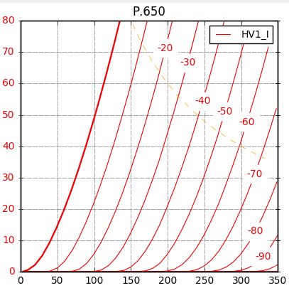 規格の200V22mA時rp1.3kΩからは程遠い1.66kΩ~1.76kΩですしgmも低い(特に3本目は疲れているかも)ですが、Ip特性は美しいカーブを描いています。低電圧大電流側でのタレもありません。