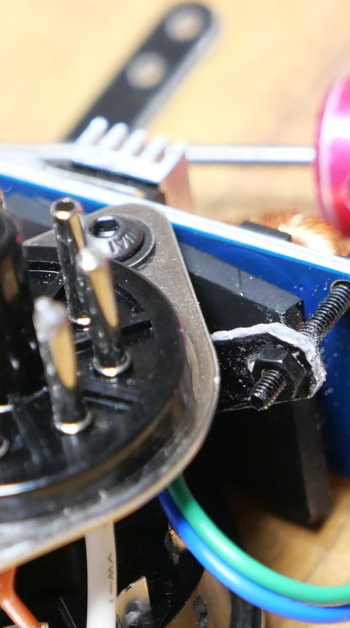 アダプタを実際に使用するため、ブラブラしているDC/DCコンバータを固定。