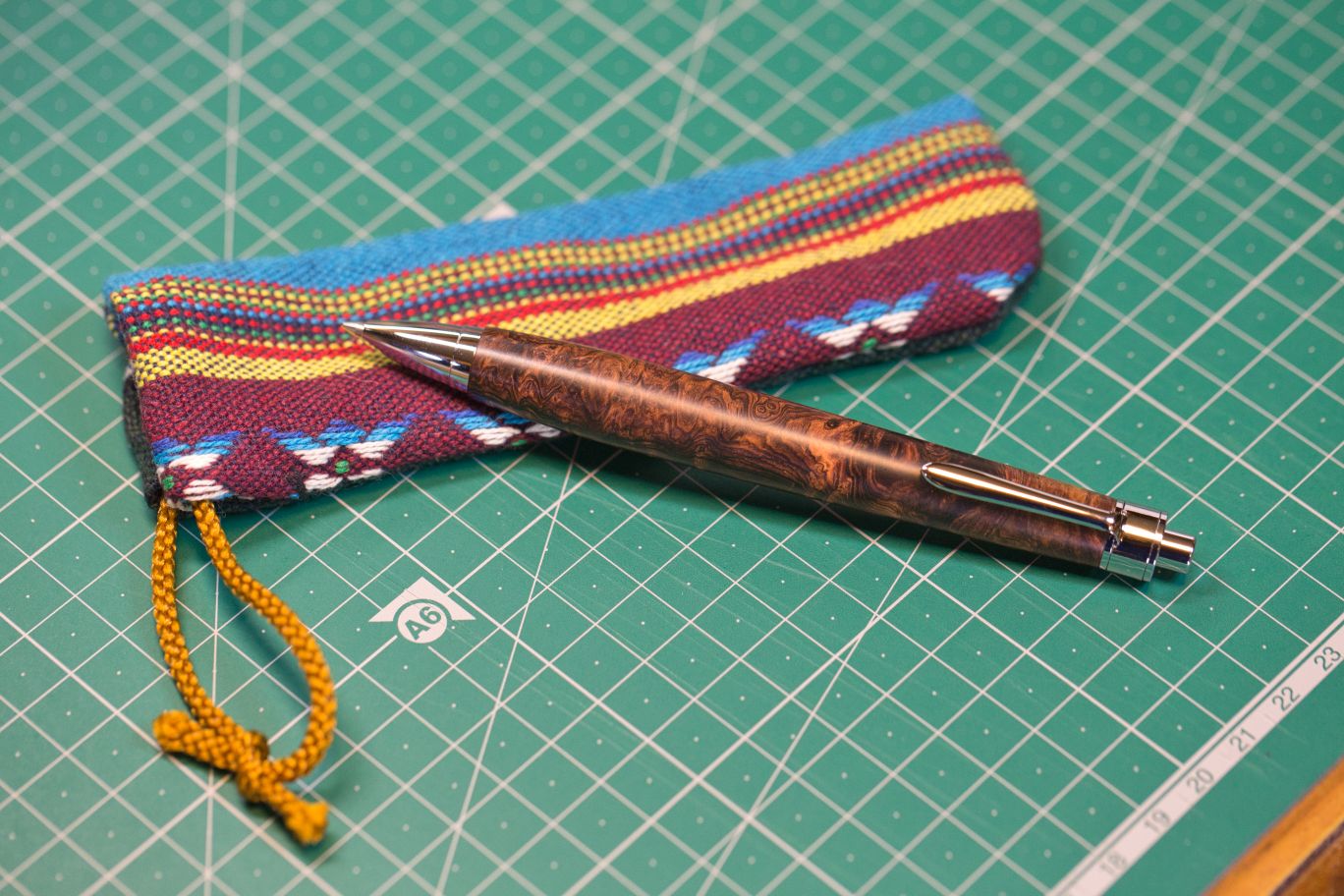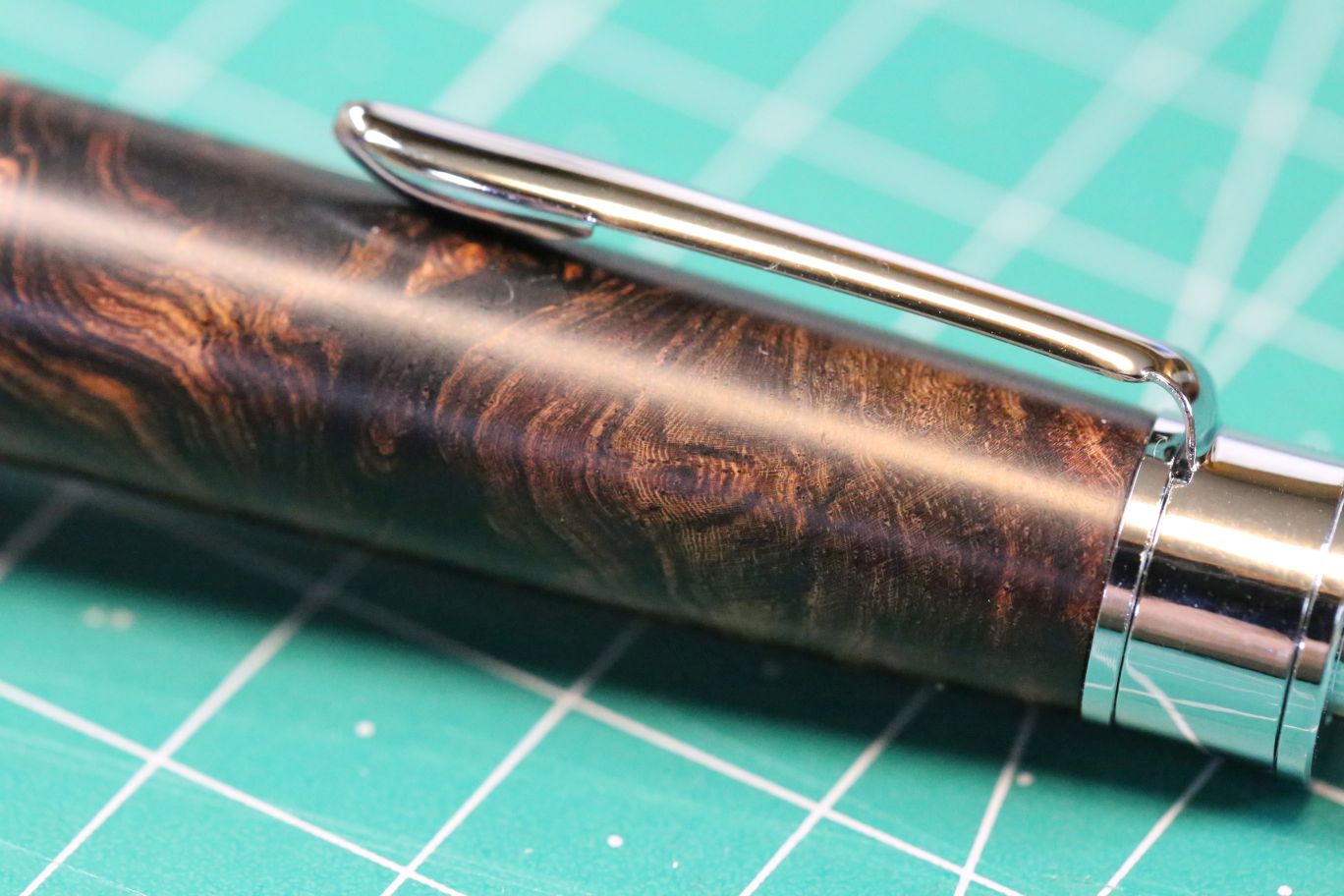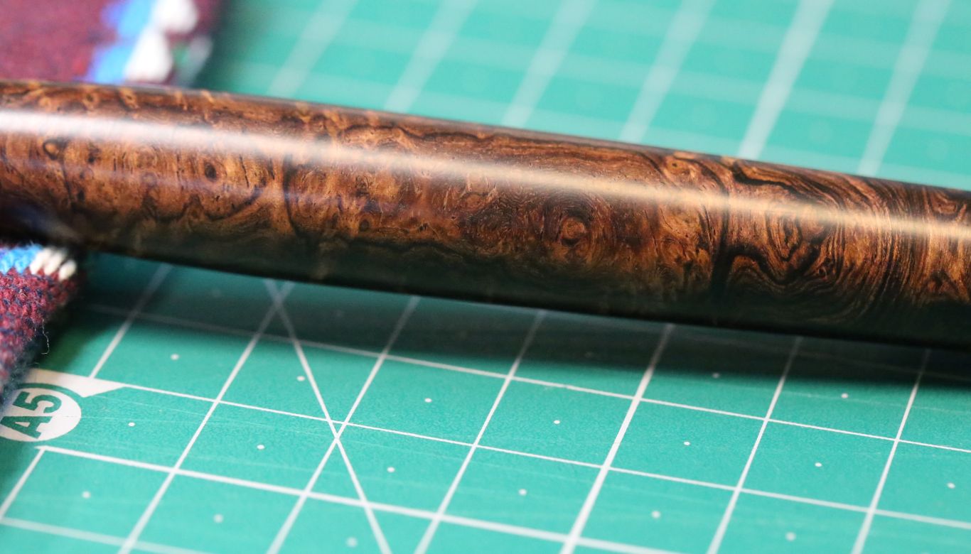 今回はチョット思い切って木軸のもので個人工房のもので色や模様が好みのものを探し、このホンジュラスローズウッドの瘤材が目にとまって購入しました。