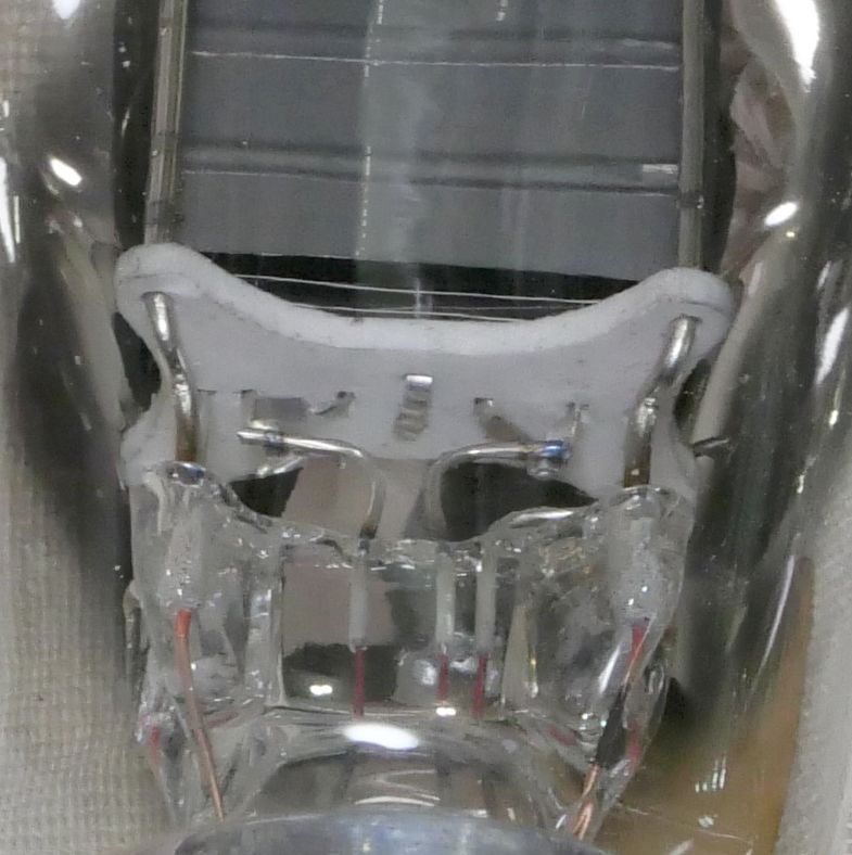 前オーナーの情報では7.5V1.25Aと書いてあり、 Radiomuseumの「38110A」 も7.5V1.25Aと書いてありますが、この球は7.0Vでいけるような気がします。