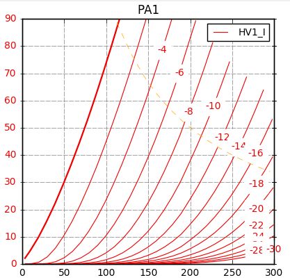 高電圧低電流領域はIpカーブが明らかに寝てきます。