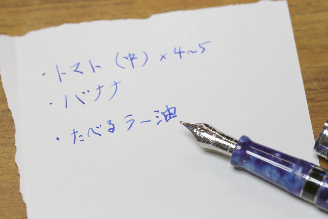 ペン先はEF(極細)だそうですが、実際に書いてみると結構太いです。