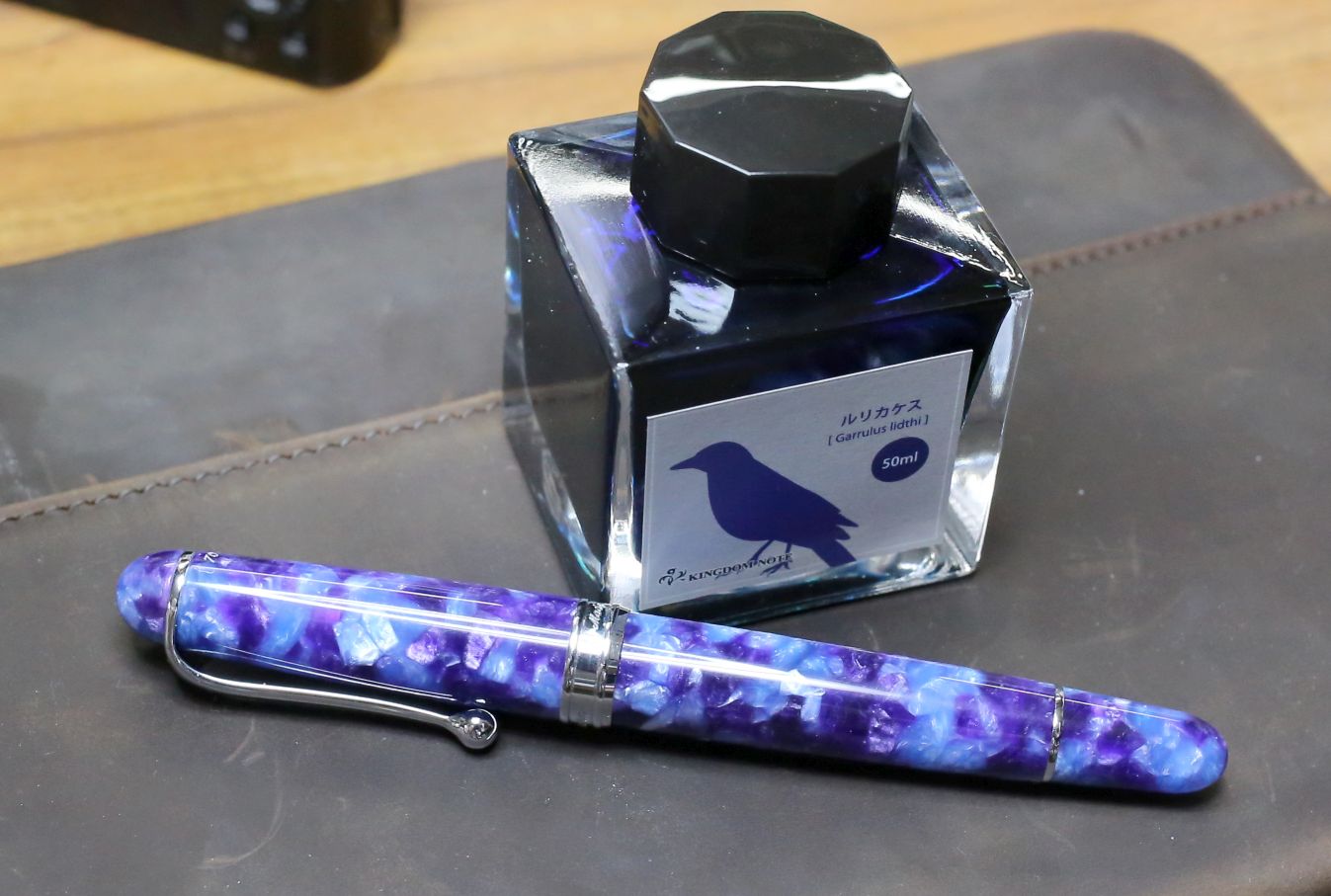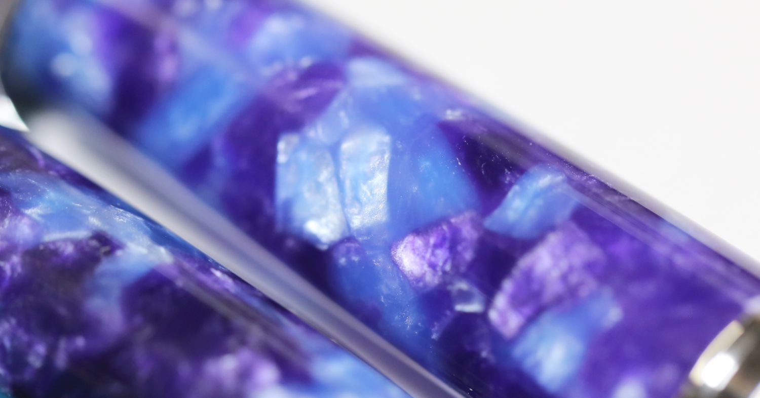 鮮やかなるも深いペン軸の群青色を見つめ、
