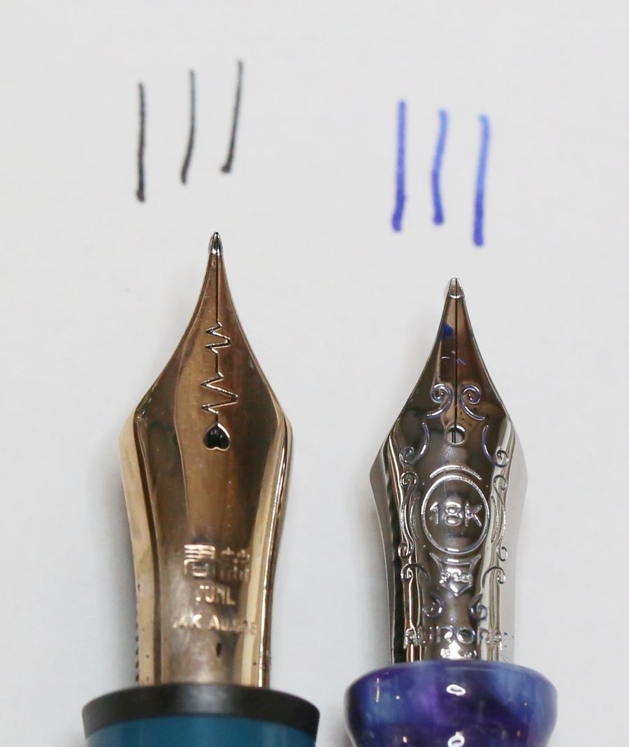 上がアウロラのゴッチアEF、下が永生のハートビートFニブ。