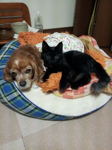 昼ご飯や晩ご飯など、私が用事をしてるときは基本的にわんことにゃんこは2人で部屋で過ごしてますわんこがシニアな為か、けんかと言うけんかには発展はしてない今日が寒かったのもあってか、なぜか一緒に寝てるではないか私がパソコンに向かっていても、2人で一緒に寝てるし。。。なぜか私はのけものにされた感たっぷりでしたまぁでも、私2人が仲良くなって安心した