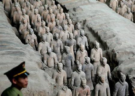 僕は、世界史が超好きです。去年まで、世界史の先生を目指してました。来春、免許ももらえる予定です。そんな中、こんなトピックスを見つけました↓[北京 17日 ロイター] 中国の杭州でパフォーマンスアートを学んでいたドイツ人の美術学生が、世界遺産に登録されている西安の兵馬俑(へいばよう)のある場所に侵入し、兵士の1人に扮(ふん)したものの、すぐに警察に捕まった。 この男性(26)は16日午後、約2000体の兵馬俑が保管されているくぼみに侵入。自作の軍服を着用し、持参した台の上に立った。 中国の新華社によると、警察に見つかるまでの数分間、まばたきもせず、そのままじっと立っていたという。 この男性は、軍服を没収され、杭州に送還された。あっはっは。上の図内で石化している人それぞれのことを兵馬俑と呼びます。めっちゃ有名です。秦の始皇帝のお墓の周りに群れを為しているそうです。当然のように、世界遺産です。まさか、これに扮するとはね。もう、完全にコントやね。テレビ的なノリやなぁ。しかも、すぐ捕まってるからね。そもそも、彼が、なぜこのような行動に踏み切ったのか。(1)兵馬俑を愛していた。(2)世界をアッと言わせたかった。(3)自分の家と間違えた。(4)前日に住む家が無くなった。(5)デスノートで操られた。(6)入り込んだはいいものの、なんらかの理由で出れなくなった。(7)居心地が良かった。(8)本気でかくれんぼしてた。(9)「ウォーリーを探せ」に憧れてた。なんかよくわからんけど、すげぇ。絶対やっちゃいけないことだけど、すげぇ。つーか、やっちゃダメだろ。