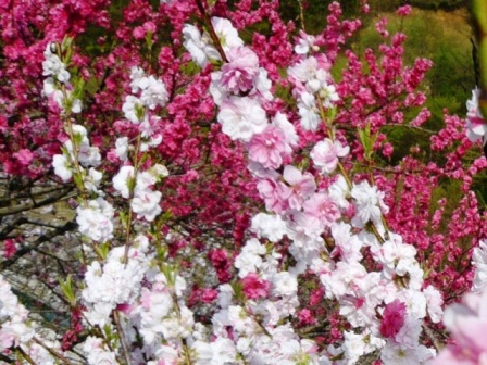 今朝(4月29日)の新聞で見て、そうだ!行ってきたよ!このはなもも街道!と・・・同級生と昼神温泉へ行きました。そのすぐ近くの月川(げっせん)です。はなももは、1本の木から、白、赤、ピンクと色を分けて咲いています。遠くから見たときは、それぞれの色の花が咲く木が植えてあると思いましたが、同じ木の枝で、色が違う花が咲いていたり、枝ごとに色が違ったり・・・上流の方は、まだ、まるいプチプチっとした蕾がついていて、それも、また、かわいくくて・・・今頃は、きっと満開でしょうね。こちらで、携帯から動画が見られます。