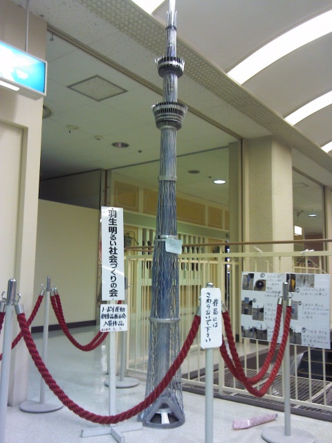 ガクとナオトの兄弟が、ノーポイをテーマとした作品展に出展し、揃って優秀な成績を収め、賞状を貰ったという。その作品が市民プラザに展示されていると聞き、過日見に行ってきた。ガクの作品スカイツリーナオトの作品屋台ナオトの作品は、ディテールまで本当に良く仕上がっていた。ガクの作品は、最初見つからなかった。高さがゆうに4mを越すチョ~大作なので、同じ場所に展示することが出来ず、天井の高くなっているところに展示されていたためだ。共に良く出来ているのに感心。兄弟で入選とはあっぱれじゃ。パワーズの若貴兄弟じゃのぉ~。もし、この作品を小泉純一郎が見たら、きっと痛みに耐えて良く頑張った!感動した!おめでとう!と絶賛するであろう。このチョ~大作を作り出したパワーを、今度はミニバスで発揮してくれる事を望む。パワーズ頑張れ!のお気持ちはこちらでも承っています →→→→→→