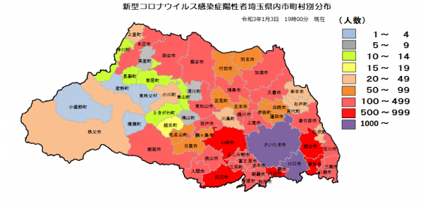 羽生市で12月30日〜1月3日の間に71〜74人目の新型コロナウイルス感染症の感染者が出た