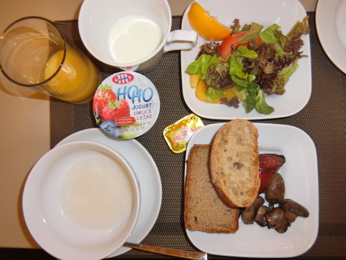 帰宅時のことを2日の日記にまとめて・・・。飛行機の席は事前にWebチェックインで決めてまして、ツアーで一緒だった人と、3席並んだうちの両端を確保してました。真ん中に座る人がいなければ、ゆったり座れるね~ということで。思惑通り、誰もいなかったので荷物起きにして。ところが、あやしいなぁと思ったのが、テレビ画面。映画もドラマも何をみようとしてもエラーが出る。「これはもしや・・・」と思ったけれど、リセット掛ければどうにかなるとも思ってた。CAさんに伝えたら「今日はどの席もトラブルが多い」って言ってて。リセット掛けると画面が一瞬落ちるからという話をされたんだけれど、落ちた様子もないし、復旧もしない。その後、ツアーの人が別のCAさんにも声をかけてて、どうもブロックごと全体的に調子が悪いらしい。それなら全部をリセットしちゃえよと思ったんだけれど、「見られないなら席を移動して」というCAさんと「それはダメ」というCAさんがいて(笑)、まあ全体で動いたら大変なことになっちゃうし、たいした映画もやってないからまあいいやと思ったので私は席に残ることにした(でも、頭上の電気もつかないんだよ・・・さすがにこれは困った)。ツアーの人は後方の席に移動したので、具合が悪かったのもあって私は3席全部使って横になって帰れたので映画を見るよりずっとよかった。食事も、目の前にすると食べられなくなるし、食べてもすぐ気持ち悪くなるし、最終的には吐いちゃうし・・・。右の朝食は「焼きそば」ってことだったんだけれど、麺が全然中華麺じゃなかったです・・・。ビーフンみたいな。しかもCAさんは「パスタ」って言ってたし(ヌードルであれば全部パスタというのは変じゃないか?)。寝て帰ったのであっという間でした。でも成田に着くころにまたかなり調子悪くなって降りてすぐまた戻しましたが・・・(笑)。クラクフで買った・・・とブログにも書いた食器がこちら。あまりお金を使うわけにはいかなかったので安いものだけですが、購入しました。ほしいなと思うものは高額だったので妥協できる範囲で。マーケットにも似たような柄のが売ってますが、食べ物を乗せるものなので、こういうのはちゃんとしたお店で買うことをお勧めします、絶対に。いろいろあったポーランド旅行。ポーランド食器、カジノ、年越しの花火、飲み会、各観光地、ピアノコンサート・・・いろいろあったけれど、やっぱりアウシュビッツは衝撃的でした。人生のうちに一度でもいいから訪れて、見て、説明に耳を傾けてほしいです。私も、一人でも多くの友達に伝えたいと思っています。