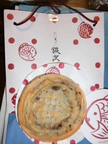 「焼き」関係は私の仕事。今夜我が家は餃子だったので焼くのだけやりました。別に特別な焼き方があるわけじゃなく、ネットとかでよさそうな焼き方を調べて焼くのだけれど、毎回焼いてあるところは香ばしく、パリパリしておいしい(自画自賛)。ハンバーグとか、野菜炒めとかも私の仕事。特に野菜炒めは絶対私。自分流の作り方ですがとにかく菜箸でかき混ぜたりせずに、そのまま野菜を放置。たまに位置を入れ替えるくらい。これでシャキっとした野菜炒めになって、翌日レンチンしてもまだシャキシャキしているのです。お試しあれ。【たい焼き鉄次】たい焼き鉄次久しぶりにたい焼き鉄次。いまさらだけれど・・・これって店名と商品名って一緒なの?(笑)何も考えてなかった。すごくおいしくて、大好きで、先輩とも「あれはおいしいよね~」って話をするくらいなんだけれど・・・あれれ?久しぶりに食べたらたいしたことないぞ?特にあんこがおいしくない・・・。こんなだったかなぁ。体調の問題かな?