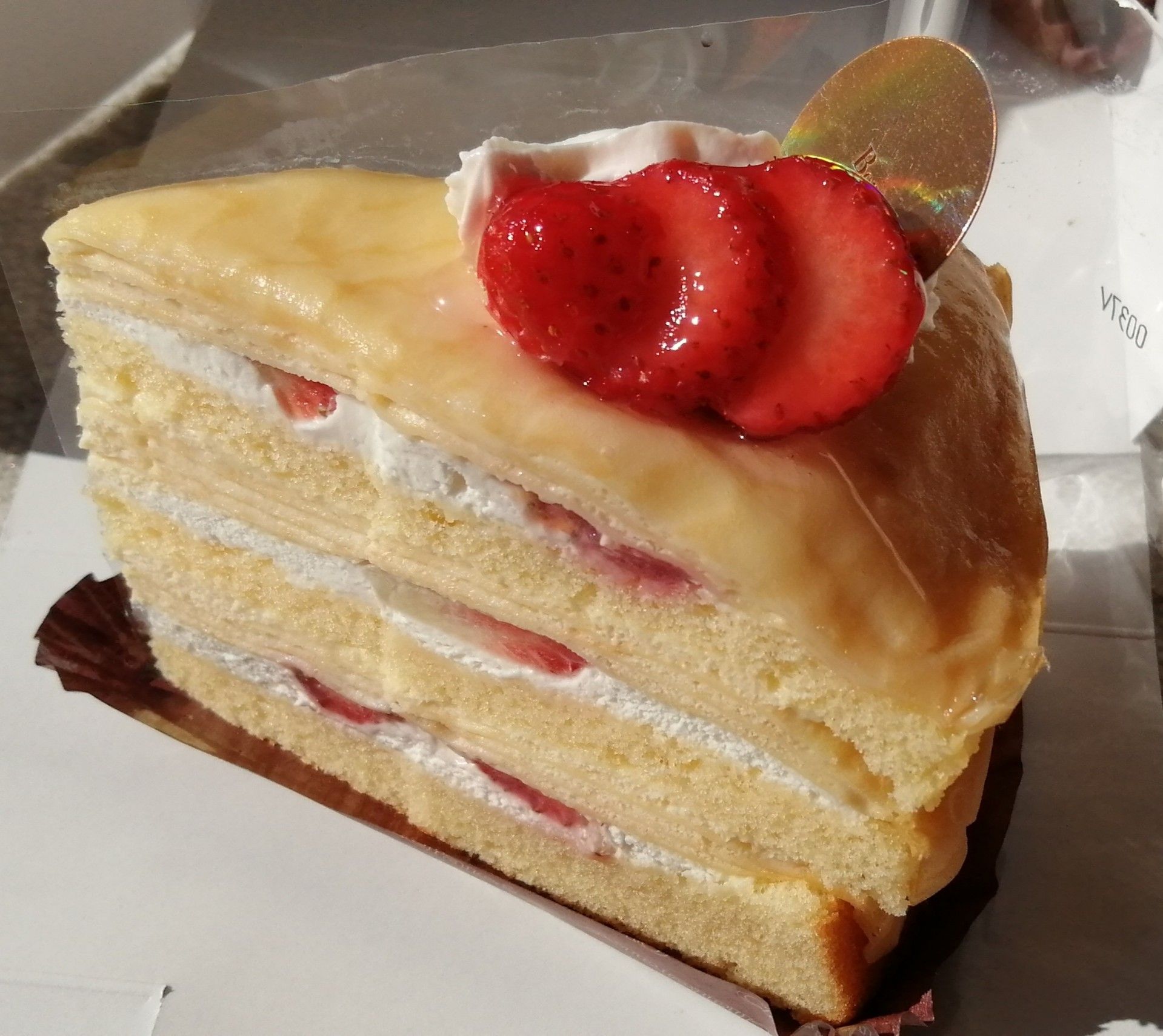 げんき~?疲れてる~。なんか天気いいのが余計疲れさせる。どこかにお出かけ行けるわけじゃないしねぇ・・・。友達に会うのもはばかられる。【シャトレーゼ】クレープ・オ・フレーズ2月に食べたシャトレーゼのケーキ。ミルクレープが大好きなんで、ミルクレープだと思ったら違うの。間に薄いスポンジが何回か挟んである・・・がっかりすぎて撃沈・・・・・。