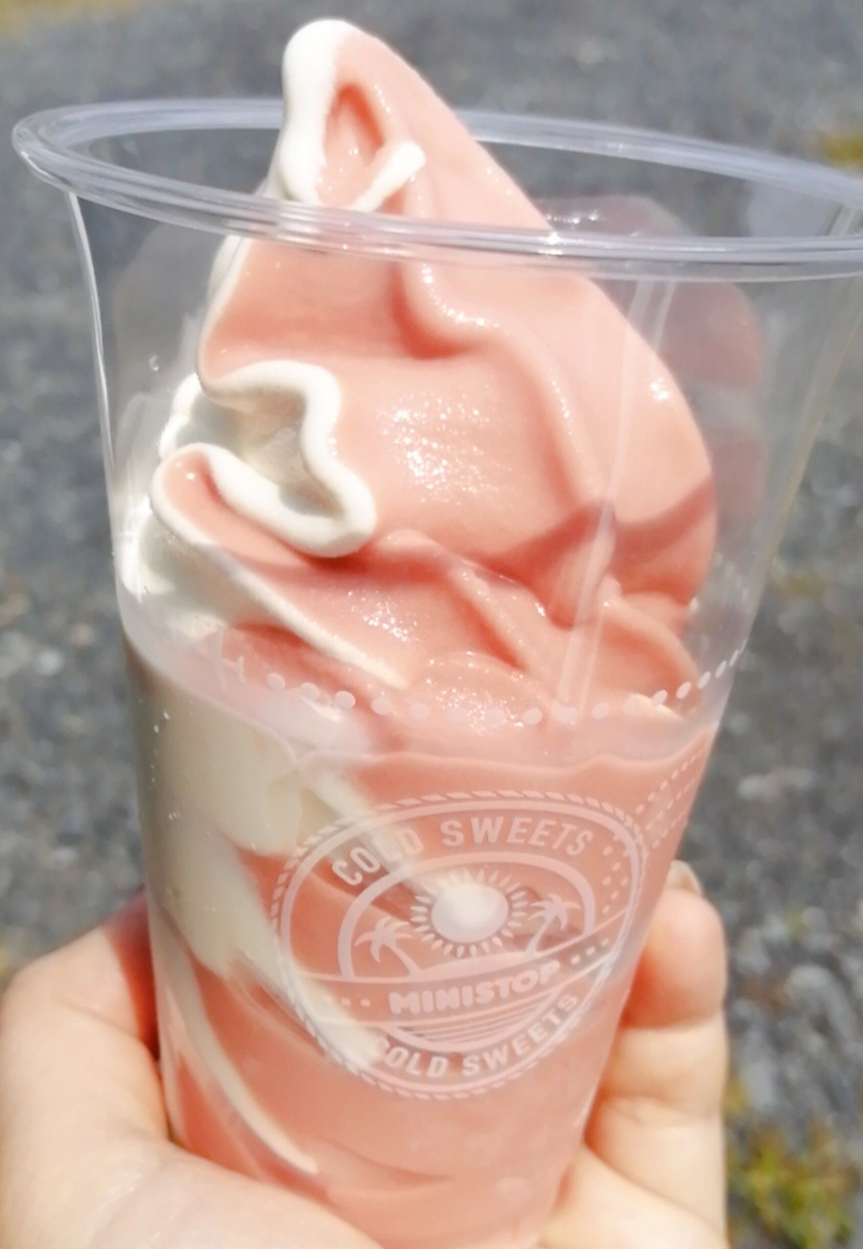 げんき~?今日のウォーキングは1時間。いつもは車の通りが多い、それゆえに歩行者が少ないところを歩いていたけれど、今日はもうちょっとウォーキングコースっぽいところを歩いたら、多少歩いている人がた。別に密にはならないけれど。ママと歩いている小学校低学年の女の子が「おはようございます!」って言ってくれた。「おはとうございます」と返した後、「おりこうだね!」って言ってあげたかったけれど言ってあげられなかった。げんきに挨拶する子を見ると、ほんとおりこうだな~って思う。私は恥ずかしがりやであいさつとかできなかったから。【ミニストップ】得盛ソフト ミックス(バニラ×さくらんぼ)5/1の発売日を楽しみにしていたので得盛ソフトを食べました。新バニラになってからは初。バニラの部分は練乳っぽくなってる。ミルク濃い。でも甘い・・・。さっぱりしたのが食べたい。前作は卵っぽさがほんと苦手だったけれど、これもまたちょっといや・・・。2つ前のに戻してほしい・・・。さくらんぼはあまりさくらんぼ風味が強くない。それだけ香料に頼ってないのはいいのだけれど・・・一体何を食べているのだろうという気になる。2巻き多くなってるから得盛、らしいんだけれど、2巻きの分と、値段の差は比例してるのかな?そして量的なことより、味に満足できなくて・・・。無駄にお金使っちゃったなと思ったけれど、部屋の掃除していたら小銭でほぼ同額のお金を見つけたので(ほぼ1円玉で)まあいっかってね。