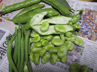 4月5日今日の夕食は、ソラマメです。おばあさんが、畑で、とってきてくれました。大根と厚揚げと、ソラマメで、たきました。おいしかった。