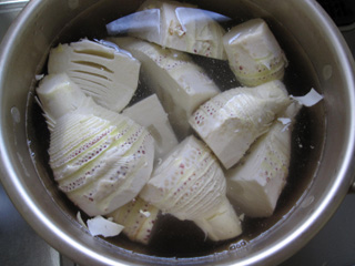 4月2日きょうは、おじいさんが、山でタケノコを、掘ってきてくれた。それを、おばあさんが、アクをぬいてくれた。食べるのは、あしたかな