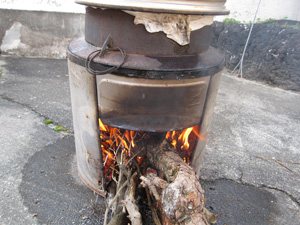 12月30日 きょうは、朝からおもちつき。火を起こして お米をかまどに おいて、たきます。石臼で、4回つきました、手がしびれた。 これを、お正月に毎日いただきます。