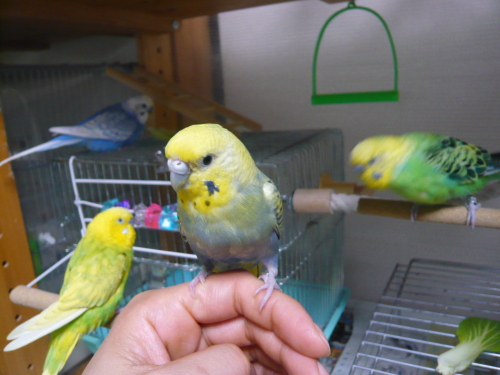 ぴーちゃんの定期検診の時、誰か1羽お供を連れて行き、一緒に診てもらっています。今回は初診から4ヶ月ほど経過したタケちゃんを連れて行きました。最近めっきりオトナっぽくなったタケちゃんですが病院に向かう車中ではすっかり甘えっ子にこれはもうインコアパートの伝統ですね。車の中ではみんな甘えっ子になります。そして久々に出してのアピール垂直ルームランナーみたいです。相変わらず面白いことするコだ…そういえば初診の時、診察台にケージを載せても寝たまま目を覚まさず、先生がケージの入り口を開けてもこの恰好で寝ていたっけ。先生に保定されても寝ぼけた顔していました。さすがに今回はちょっとソワソワしていましたが、ひどく怖がる事もなく診察終了。もちろん異常なし。健康そのものということでした。ヒナ換羽も終わり、頭はバーコードの取れたツルツル黄色あたまになり、ミントグリーンだった羽色も黄色味が強く鮮やかになって若草色といった感じの色に変化しました。そろそろお鼻の色も青くなることでしょう。 応援クリックよろしくお願いします