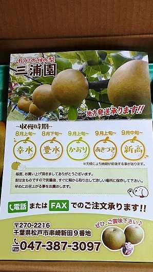 千葉県のMS社長夫妻より、千葉県松戸市の「梨」を頂きました。