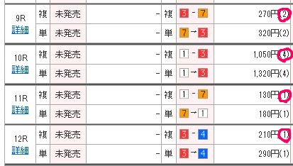 例回通りやっぱりでましたね。 オカルト的な連鎖は1/2ですから でしょうね って程度なんですが参加する タイミングで参加費を 抑える事ができるかも。 Do7の前日当選で一気に Do4に参加変更したので 2口と、、、結果予想の 通り4/17少額当選(4/7ブログ) になりました。 次の高額期待は いつも通りなら 5/13あたりでしたが Do7が空っぽ状態なので Do4の平均参加費が0.25k 以上に見込まれるので 週明け1k万円だと 急激に参加費が0.5kに 参加費が1k超えをした 時点で当選すると オカルトします。 なので 4/25~頃から締め切り時間 1時間前あたりから 参加費のチェック(1k万円)を して割り振りがよければ 参加してみては?ちなみに今回は割り振りがダメダメでしたので自分は非参加でした。11Rで6投票で無理だなとみていたのですがでるときはでてしまうもので9番人気(単複15番人気)中穴でヒットしましたね。