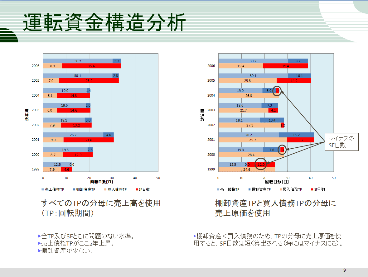 昨日の記事にも書きましたが、回転期間の式の分母に売上高を使うか売上原価を使うかで、結果が変わってきます。