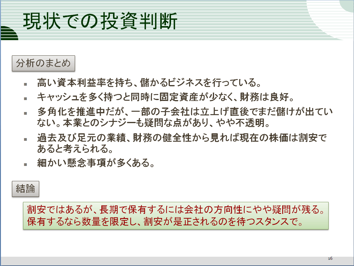 私見ではあるが、なんとなく開示姿勢に対してもやもやしたものを感じる。