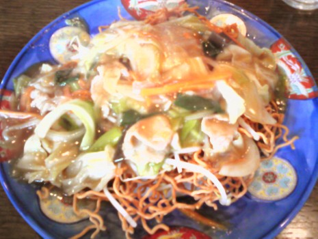 -ソロで行っていないプチ遠征記-『白楽天 で 揚げそば』今日は朝から雨が降っていましたが、お昼前にはよい天気になりました。が、風が強く寒いのでソロには乗らず、黒バスでお昼に行くことにしました。本日のプチ遠征は「白楽天」です。[揚げそば¥:700]今日のお昼も2時頃でしたが、お店には何組ものお客さんがいます。私は一人なのでカウンターに座りました。このお店では"特ヤキ(特製ヤキメシ)"を注文することが多いのですが、本日は無性に"揚げそば"が食べたくなりました。"揚げそば"は揚げた麺に八宝菜のような餡がかかっていて、"皿うどん"とよく似ていますが、餡が醤油味になっています。約5分でできてきました。パリパリっと麺が揚がっているので量が多そうに見えますが、普通に一人前の麺の量です。またこの"揚げそば"を食べるとき、箸を使わずレンゲだけで食べるのが"通"とされています。コツは最初にしっかり麺を押しつぶして、細かく砕いて食べることです。当然ながら私は最後まで、レンゲ一つで美味しくいただきました。[この焼き豚が美味しい!]余談ですが、ここのお店の"焼き豚"が私は好きです。最近多いトロトロの"焼き豚"でなく、シヤキシャキっとした"焼き豚"です。これをキャベツの千切りに巻いて、タレをつけてたべると、ん~~っ、、、美味! ビールが欲しくなりますねぇ。。。白楽天(C)Komachi愛媛県今治市常盤町4-1-19営業時間:11時~15時、17時~22時定休日:火曜TEL:0898-23-7292 データは2008/12/05現在のものです。おすすめレビューを見る