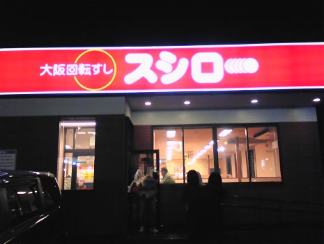 -本日の遠征記3.-『スシロー 今治中寺店』[お店外観:夜なので見えません(^_^;)]高松からの帰りに、愛媛一号店として今治市中寺に最近できた回転寿司のチェーン店、「スシロー 今治中寺店」に寄りました。日曜日の夕ご飯は家で私がつくることが多いのですが、本日の帰途は夜8時前と遅くなったため、外食して帰ることにしました。。。[このインターホンに注文]オープンしてまだ一月ほどなのと、日曜日の夜ということで、8時という遅い時間でしたが店内は満席状態です。ただ運良く我々は、ほとんど待つことなく席に着けました。このお店は全皿¥105と、均一価格です。まぁ私のビールは¥500オーバーでしたが、、、そして他店と違うところは、回転テーブルの中に店員さんがいないということでしょうか? 回転テーブルの上にインターホンがあり、欲しい寿司をインターホンで注文することになります。これなら気の弱い子供や女性でも、スラスラと注文ができます。[寿司いろいろ1]肝心の味の方ですが、まぁ¥105、こんなもんでしょう、、、が、いろいろとおもしろいネタがあります。"アンきも"なんてのもありました。今回私が食べた中では、"(酢でシメている)いわし"のにぎりが美味しかったです。。。さて例のインターホンに、はじめはとまどっていた我が家の子供達も、慣れてくると次から次へ注文をするようになりました。気が付けば皿の山、、、今夜は食べ過ぎですねぇ。。。[寿司いろいろ2]*************************************************【お店の情報】住所:愛媛県今治市中寺599-1電話:0898-33-8024FAX:0898-33-8025営業時間:11:00 ~ 23:00 定休日:?席数:120席位?駐車台数:50台位?HP:http://www.akindo-sushiro.co.jp/index.php【メニュー】(一例)すし全皿:¥105、和みセット(3人前):¥1050、賑わいセット(3人前):¥1200、波セット(3人前):¥1260、極上セット(3人前):¥2040、かにちらし:¥550、海老いくらちらし:¥550*************************************************