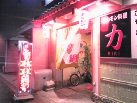 -ソロで行っていないプチ遠征記-『もつ鍋屋 力(りき) で 味噌ネギラーメン』今夜はJCのシニアクラブの忘年例会がありました。私は司会(のようなもの)をしていたため食事があまりできず、二次会、三次会と流れたあと、かなりお腹が減ってしまっていました。前回の松山同様M.I.先輩といっしょにいたので、最近できた「もつ鍋屋 力(りき)」が、ラーメンをはじめたというので行ってみることにしました。先日はうどんで「ちから」、今夜はラーメンで「力」と、パワーがつきそうな名前のお店が続きましたねぇ。。。(笑)[お店外観]さてこのお店、以前は焼き肉屋さんでした。お店のつくりはその時とほとんど変わっていません。お店に入ったのは午前1時半ころでしたが、今夜は金曜ということもあり、若者達でけっこう賑わっています。我々はカウンターに座り、私はお店の人のオススメの"味噌ネギラーメン"を、先輩は"味噌ラーメン"を注文しました。"焼酎の水割り"を飲みながら待っていると、ほどなくして注文のラーメンがでてきました。[味噌ネギラーメン:¥650]今回は多少酔っていたので味の評価には自信がありません。味噌味なのではっきりしませんが、スープはトンコツ系のベースでしょうか? 麺は中位の太さの角のある形で、わずかに縮れ麺です。食感としては、コシがあるのではなくシコシコとしています。チャーシューはシャキシャキで、ネギもほどよく入っていてよいでしょう、、、どこかで食べたことがある気がしていましたら、先輩曰く"以前、ラーメンQだった店長だヨ!"と教えてくれたので、ナットク!! しました。。。普通に美味しいラーメンなので、また夜の飲み会の帰りに行ってしまいそうで、メタボ注意報がでそうですねぇ。。。そういえばお店は"もつ鍋屋"なので、"もつラーメン"があっても良いのでは・・・!?[アップで]*************************************************【お店の情報】住所:愛媛県今治市松本町2丁目2-16 電話:0898-32-9322FAX:?営業時間:17:00~深夜定休日:水曜日席数:約50席駐車台数:たぶん無しHP:?【メニュー】(一例)正油ラーメン:¥550、味噌ラーメン:¥550、塩ラーメン:¥550、ワカメラーメン:¥600、ネギラーメン:¥650、味噌ネギラーメン:¥650、チャーシューラーメン:¥650、味噌チャーシューラーメン:¥650、ネギチャーシューラーメン:¥750、味噌ネギチャーシューラーメン:¥750、焼メシ:¥500、焼豚玉子メシ:¥600、お茶漬:¥400、もつ鍋(一人前):¥700、ホルモン鍋(一人前):¥600、ミノ鍋(一人前):¥600、豚バラ鍋(一人前):¥550、ピリ辛もつ鍋(一人前):¥850*************************************************