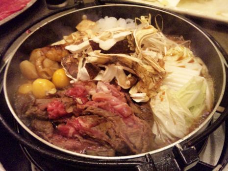 -ソロで行っていないプチ遠征記-『松茸V.S.ポルチーニ と フォアグラ丼(つつい)』今夜は先日より三連戦、、、じゃなくって三連チャンの、いつもの後輩I.K.君のお店:「焼肉遊館つつい:リンク多いのでたどってください」さんで無尽です。。。[松茸すき焼き]先月も食べましたが、今夜も"松茸すき焼き"です、、、でも今夜はイタリアの"ポルチーニ"も参戦しましたねぇ。。。[松茸とポルチーニ]まぁ、どちらもすき焼きの具にしちゃいましたが、、、松茸はシャクシャク、、、ポルチーニはモチモチっという感じでした。。。[肉やキンカン、炭火で姫貝]それより私は炭火で炙った姫貝(青柳だが、ナゼか今治方面では鳥貝という)が大好物です、、、お酒が止まりません。。。[フォアグラ丼(試作品)]今夜の締めは、現在試作中の"フォアグラ丼"、、、これはメッチャ旨っ! 近々ランチメニューとしても"スープ"と"サラダ"と"コーヒー"が付いて、1000円~1500円の間でメニュー化の予定です。。。因みに"色眼鏡のブログを見たヨ!"ということなら、割引もアリだそうです、、、お楽しみに~~!!